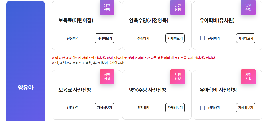 2. 보육료, 유아학비, 양육수당 당월신청