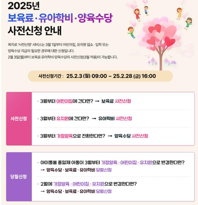 1. 보육료, 유아학비, 양육수당 사전신청